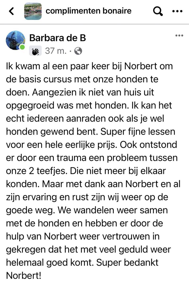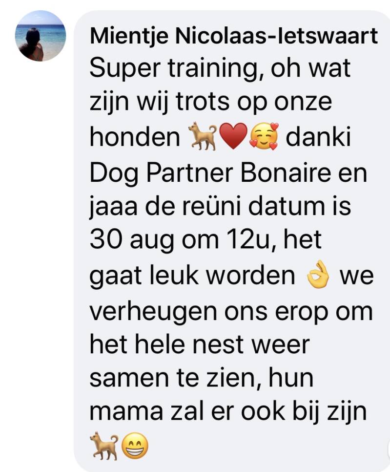 Benieuwd naar meer? Bekijk ook de 5-sterren reviews van DogPartner Bonaire op Google en ontdek hoe anderen onze trainingen hebben ervaren!